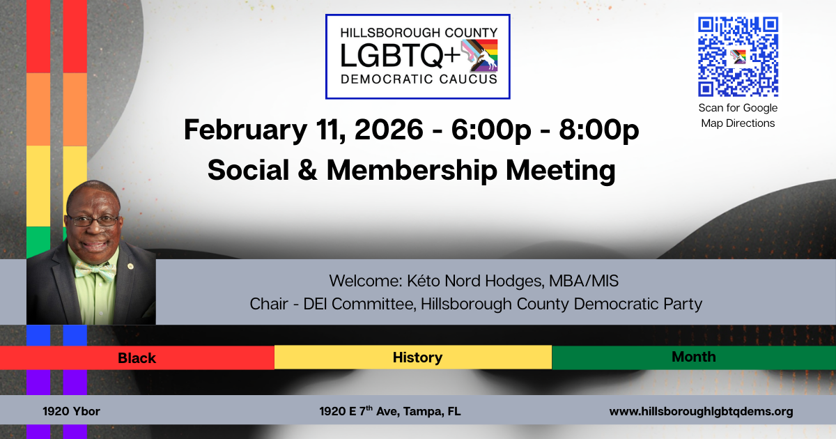 Our guest speaker will be Kéto Nord Hodges, MBA/MIS, and DEI Committee Chairman at the HCDEC (Hillsborough County Democratic Executive Committee) and he will give a special presentation for Black History Month.